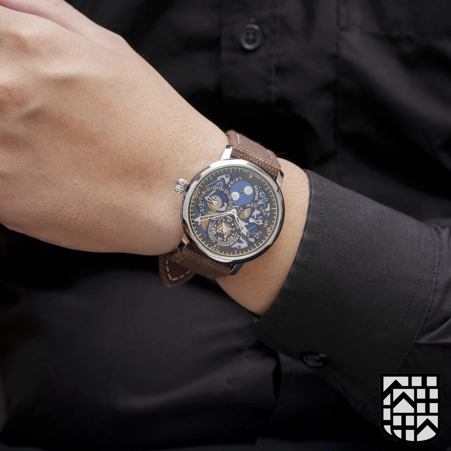Rất hân hạnh được giới thiệu bản thiết kế lại của Nhà sản xuất Lịch vạn niên Frederique Constant Slimline, ý tưởng hợp tác với Frederique Constant trên một chiếc đồng hồ đã nảy sinh. Nhà sản xuất lịch vạn niên Slimline đáp ứng hoàn hảo nhiệm vụ này. Mặt số bao gồm bộ chuyển động và ý tưởng thể hiện bộ chuyển động một cách vật lý, từ đó tạo ra Phiên bản giới hạn mang lại cho đồng hồ một bản sắc mới và bao gồm các yếu tố thể hiện sứ mệnh của nền tảng The Naked Watchmaker trong đồng hồ.