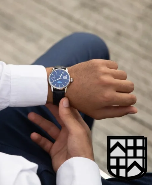 Đối diện, từ vị trí 2 đến 3 giờ, ngày trọng đại hiển thị một cách kiêu hãnh cửa sổ đôi bao quanh (một dành cho hàng chục và một dành cho đơn vị). Sự cân bằng hoàn hảo này còn được làm nổi bật hơn nữa bởi pha mặt trăng rạng rỡ, thơ mộng ở vị trí 6 giờ trên nền xanh đầy sao.